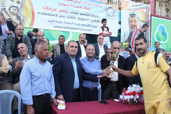 غزة-الناطق الإعلامي لقدامى الرياضيين/ كرمت الجمعية الفلسطينية لقدامى الرياضيين مساء امس الخميس أبطال سلسلة الفعاليات الرياضية "كرة قدم – كرة سلة – كرة يد" في حفلاً رياضياً مهيب أقيم على الملعب المعشب بنادي غزة الرياضي, إحياءً للذكرى 13 لاستشهاد القائد الرمز ياسر عرفات "أبو عمار", برعاية شركة البيان للتجارة العامة فؤاد السمنة إخوان.